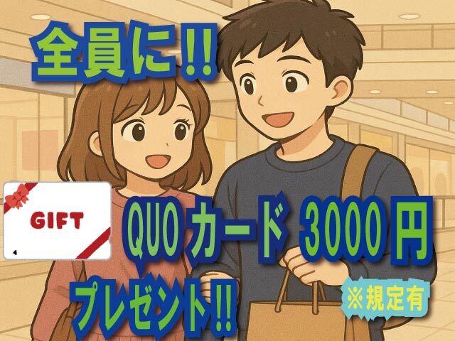 うれしいQUOカード3000円分プレゼント!!