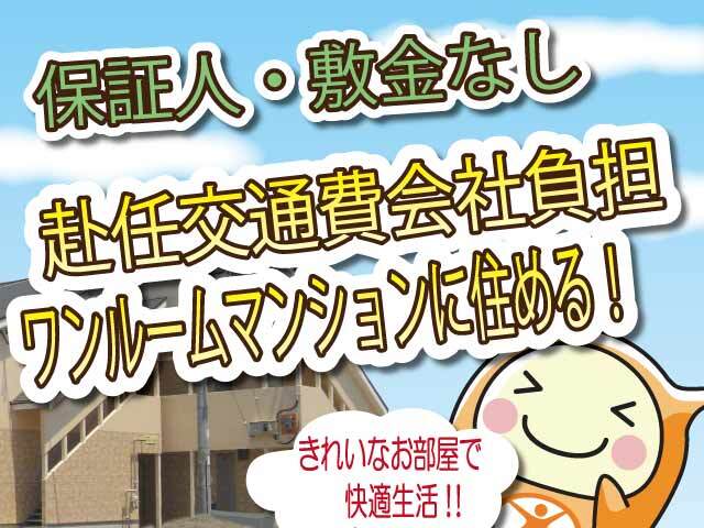 | 待遇 | ☆通勤者:通勤交通費実費支給!車通勤の方はガソリン代支給! ☆ワンルームマンション入居者:赴任交通費全額支給!赴任時の昼食プレゼント! ◆うれしい特典◆ 3月末迄に入社の方全員 通勤の方 ☆入社後☆にQUOカード3000円支給! 入居の方 ☆赴任後☆にQUOカード3000円支給! ・交通費実費支給・ガソリン代支給 ・各種社会保険有 ・赴任交通費全額支給 ・仮払い有 ・ワンルームマンション有(冷蔵庫・電子レンジ・寝具他、生活備品有)【申込制】 |