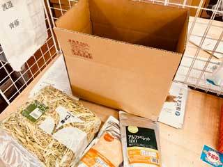 うさぎさんの生活に必要なフードや牧草の入荷作業、