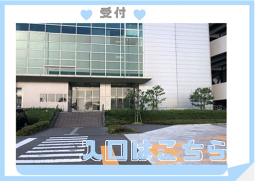 面接の際は下記、画像の入口より1Fエントランスへお越しください。
