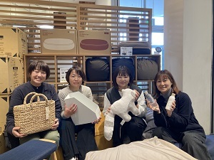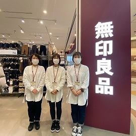現在、学生から主婦の方まで幅広い世代のスタッフがチームワーク良く働いており、レジ対応や商品のご案内等のお客様応対や、商品の品出しのほか、無印良品に来ていただいたお客様に喜んでいただくために、みんなでさまざまなアイディアを出し合い、日々営業しています。