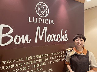 コンセプトは「モノを大切にして、豊かな生活を」品質に問題がないにも関わらず、賞味期限が近づいていたり、見栄えの悪さなどの理由で捨てられてしまうお茶や食品を、ボンマルシェにご提供するお店です。 紅茶、日本茶、烏龍茶、ハーブティーなど年間約400種類以上の多彩なお茶を扱う世界のお茶専門店「ルピシア」のお茶をはじめ、輸入食品やお菓子・調味料など、様々な商品を取り扱っています。実際に味わって、感じたことを自分の言葉でお客様に伝えることも大切な仕事です。